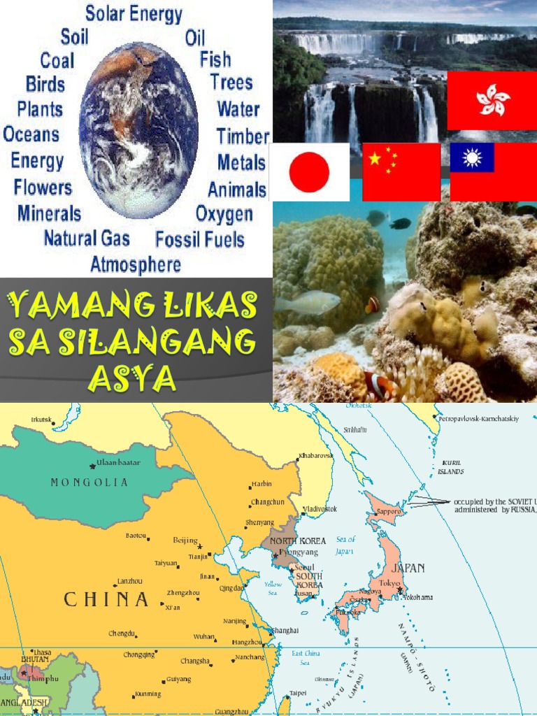 Apr 25 2016 Panalangin Luad Asbestos Marmol 2. Ang mga likas na yaman ay tumutukoy sa mga materyales. Ang Silangang Asya ay binubuo ng mga bansang China Japan Mongolia North Korea South Korea at Taiwan.